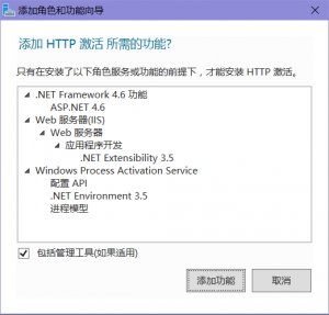 选择”HTTP激活”->单击”增加功能”