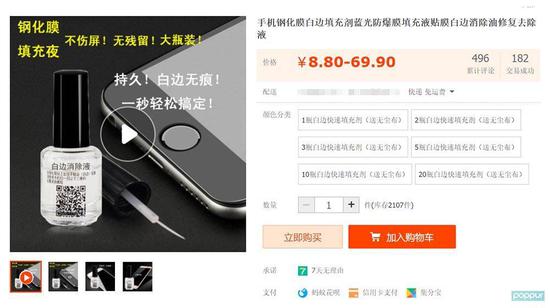 新手机到手,大家做的第一件事可能就是贴钢化膜了。说起贴膜,这可是一个技术活呀。现在的手机都用上了2.5D屏幕,而三星的曲面屏更是接近3D的弧度了,贴起膜来难度十分大,有些贴膜的边缘还会出现白边,不仅影响观感,用久了钢化膜内部还会沾满灰尘造成脱落。为了解决这烦人的白边,淘宝出现了一种名为“钢化膜白边液”的商品。根据店主的描述,贴完膜之后在钢化膜的边缘涂一点白边填充液,即可让钢化膜粘附在手机屏幕上,完美去除白边。