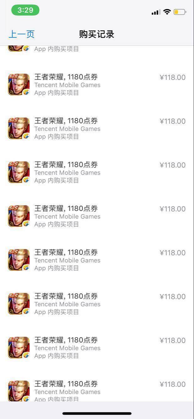 浙江台州的李同学告诉AI财经社,10月9日下午两点,在一分钟内,她的苹果手机被连续盗刷了近4000元,全部用于充值王者荣耀点券。受害用户不止一位,在一个维权QQ群里,群主告诉AI财经社,据她了解,起码有数千人遭到盗刷。