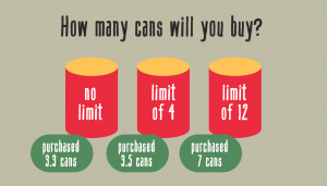 在这个测试当中,实验人员会记录用户购买罐装的汤,通常而言用户会一次购买2到3罐,可是当实验人员开始限制用户的购买数量之后,用户购买汤的数量则增加到了5到10灌,购买数量翻了2到3倍。