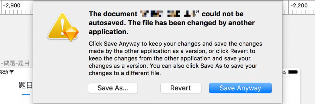 现在,我可以随时查看其他设计师共享的文件,其中 Sketch 源文件可以随便修改,就是没有权限保存。对方保存 Sketch 后,我的 Mac系统会提示文件发生变化,可以根据提示选择更新还是其他。
