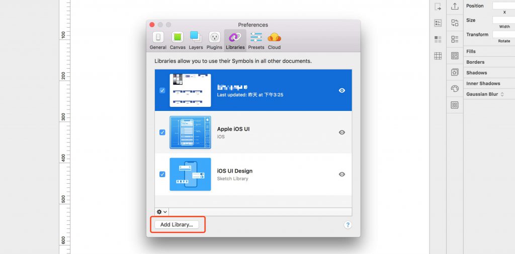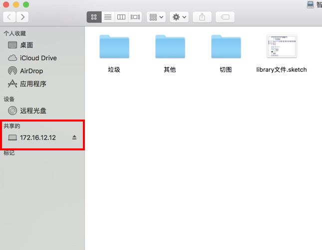 点击 Add Library 后,我们需要在 Finder 弹窗中找到需要的 Library,然后引入到 Sketch 中。右侧就是我们刚才连接的A同学电脑共享地址。