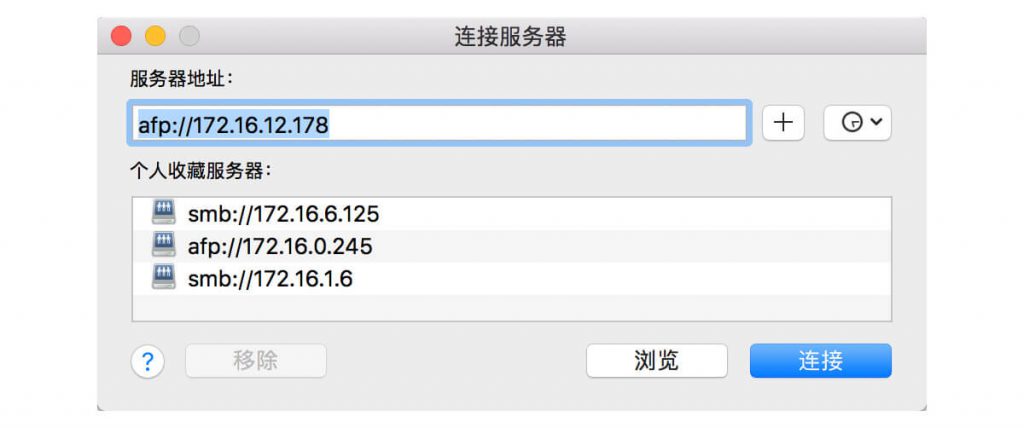 根据上面步骤设置后,就可以进入对方电脑了。打开 Finder,快捷键 cmd+k,输入对方 afp 或者 smb 开头地址,然后在弹窗中选择客人,接下来再选择你想进入的文件夹就可以了。