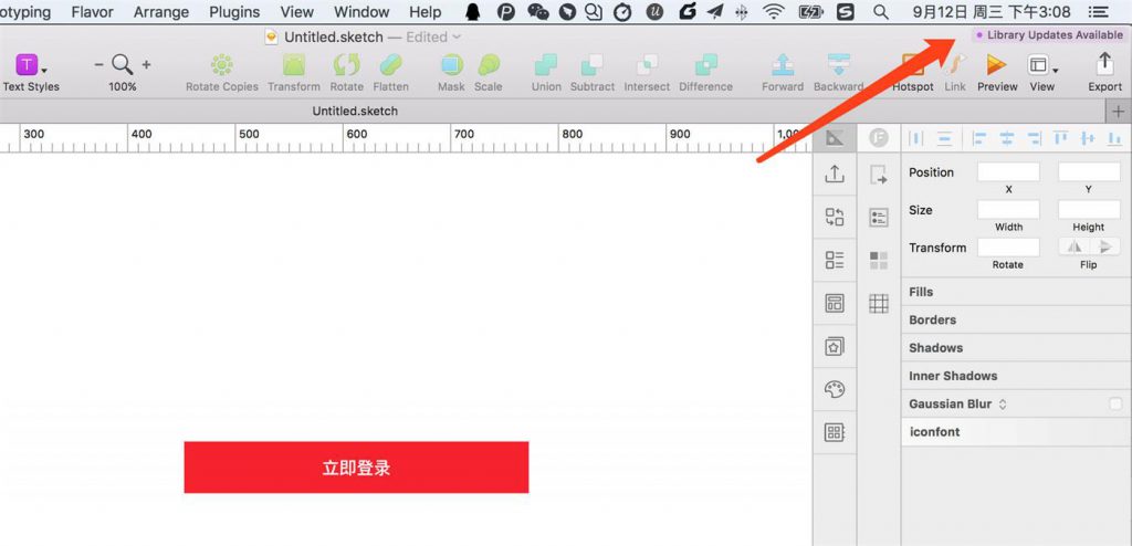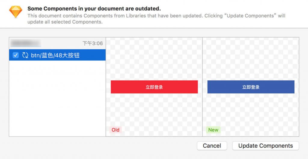 如果 Library 中的 symbol 样式发生变化,Sketch 文档就会在右上角收到紫色的更新通知,点击后在弹窗中就可以看到哪里发生了改变,之后进行更新。