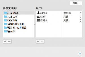 依次打开设置 – 共享,打开设置面板。左边列出了 Mac 可用的共享类型,我们需要使用文件共享功能。afp 和 smb 开头的地址就是其他小伙伴进入你的电脑需要用的。