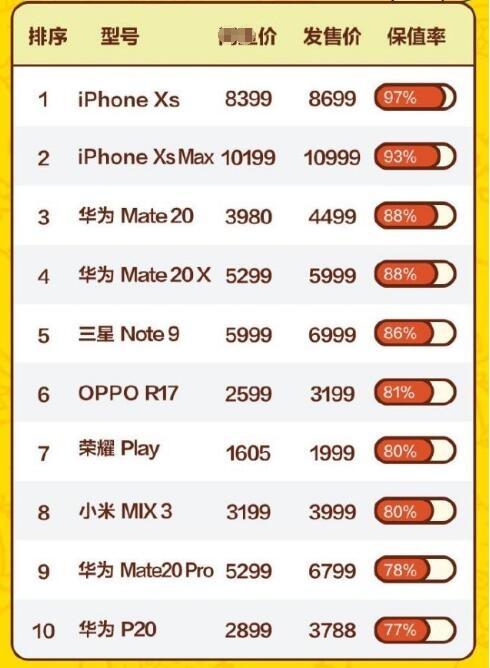 那么从二手市场就可以看出,哪些品牌哪些型号的手机更加保值,阿里旗下某二手平台就通过大数据给大家统计了2018手机保值排行榜单。
