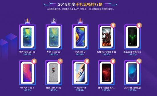 面对众多的国产品牌,其实用户对手机的流畅度最为关注。国内知名软件鲁大师也是新鲜出炉了2018年度手机流畅排行榜,公布了去年全年的手机流畅度TOP10,为精彩的2018年画上完美的句号。
