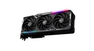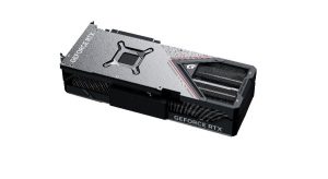 将视线转移至显卡背板处,引入眼帘的便是系列经典的三角形设计元素,背面同样拥有锋锐的气息。由于RTX 40系列的PCB缩短,因此替换了上代“灵视”的RGB灯组设计,采用了镂空结构,更利于风吹透显卡,利于散热。其首次加入的合金压铸中框将增强显卡强度,这代所运用的GPU金属支架也能够为核心平均压力。