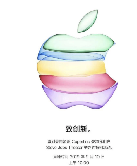 这次邀请函的主题是“致创新”,海报设计图案为五彩的苹果logo,其中绿色与紫色极有可能就是今年iPhone 11(推测名)新增的两个配色。 继续阅读“苹果发布会时间确定 9月10日iPhone 11或登场”